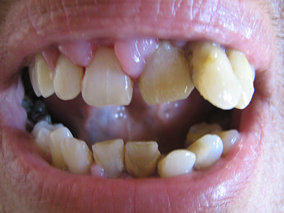 Sostituzione dell'intera arcata superiore con malattia parodontale.